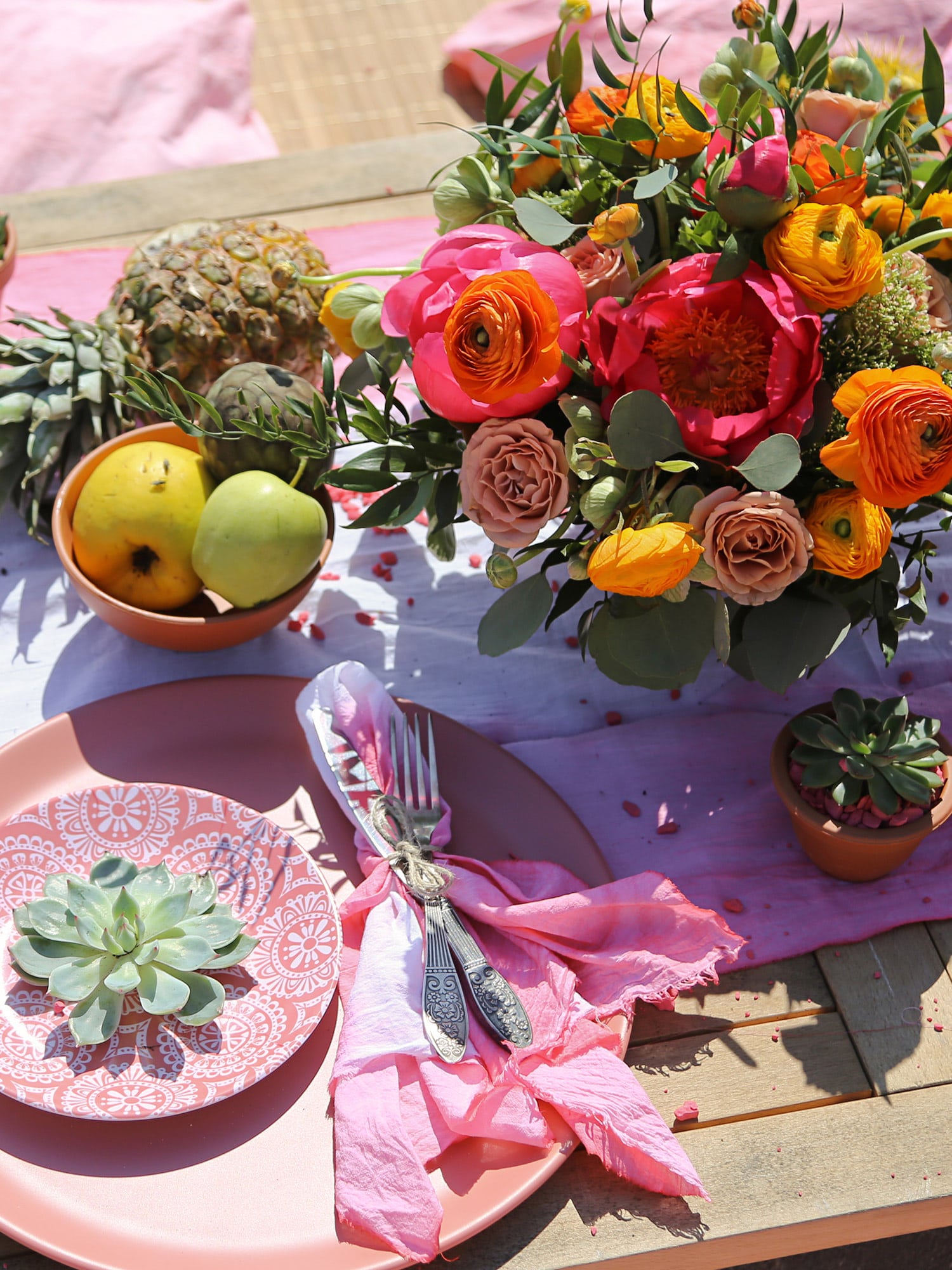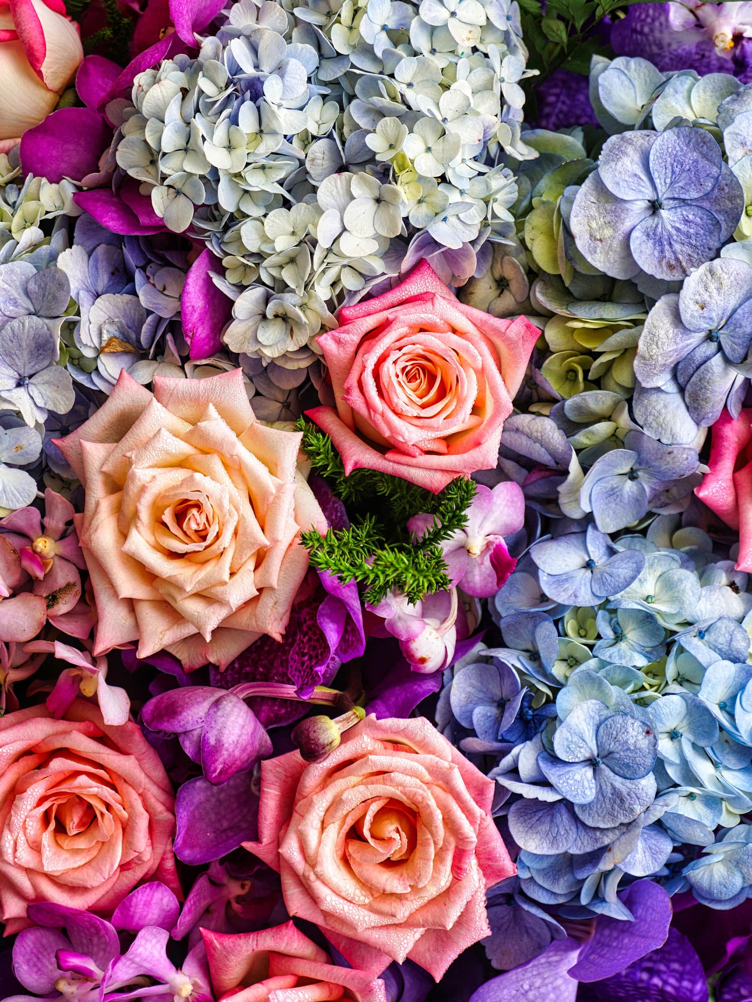 • Fuchsia — A punchy pink that brings to mind tropical flowers, glossy popsicles, and long afternoons in the sun filled with laughter, music, and bright swimsuits. In fresh flowers, fuchsia has a bold, festive presence that immediately catches the eye. Roses, peonies, orchids, and bougainvillea-inspired blooms in this vivid pink shade add drama and excitement to summer arrangements. They’re spirited, celebratory, and impossible to ignore.